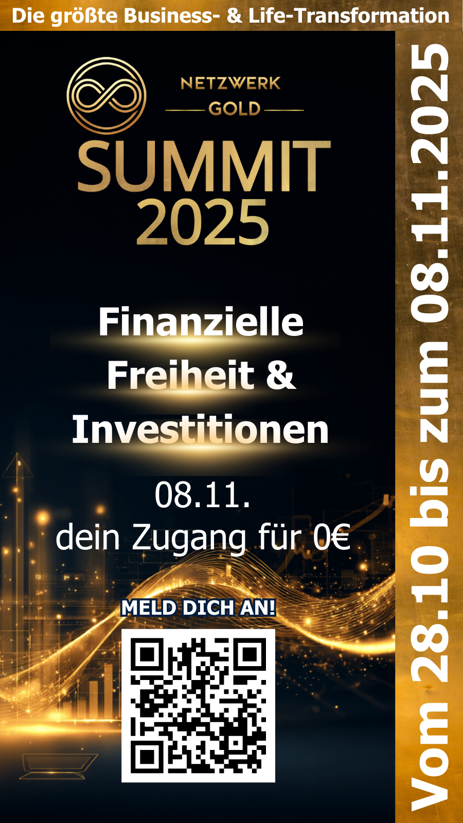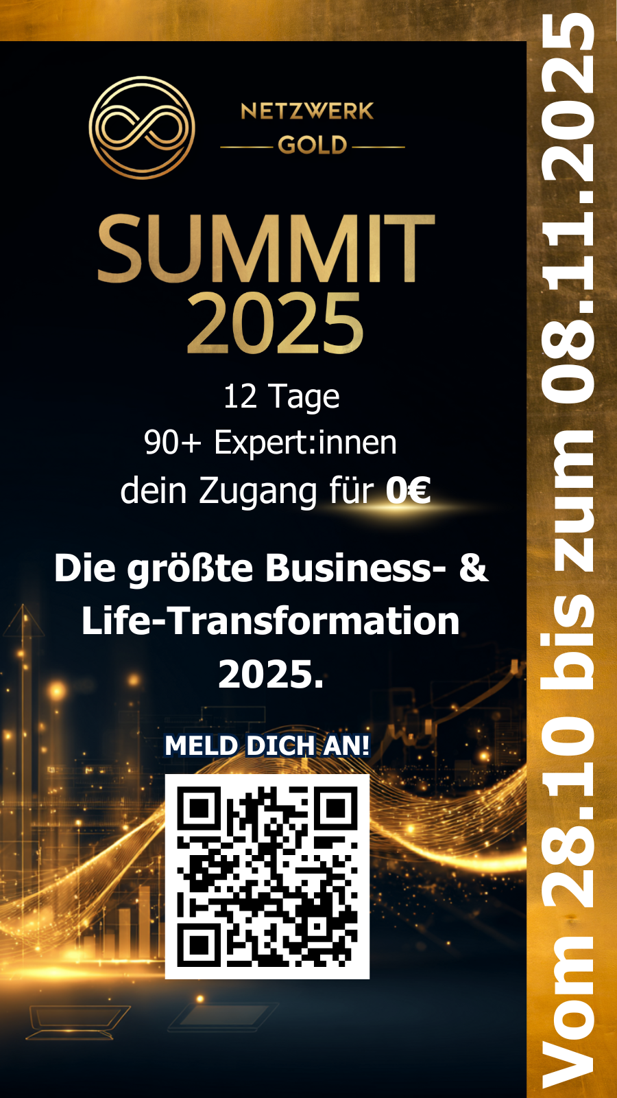 Hier kostenlos dabei sein:https://netzwerkgold.de/summit-2025/